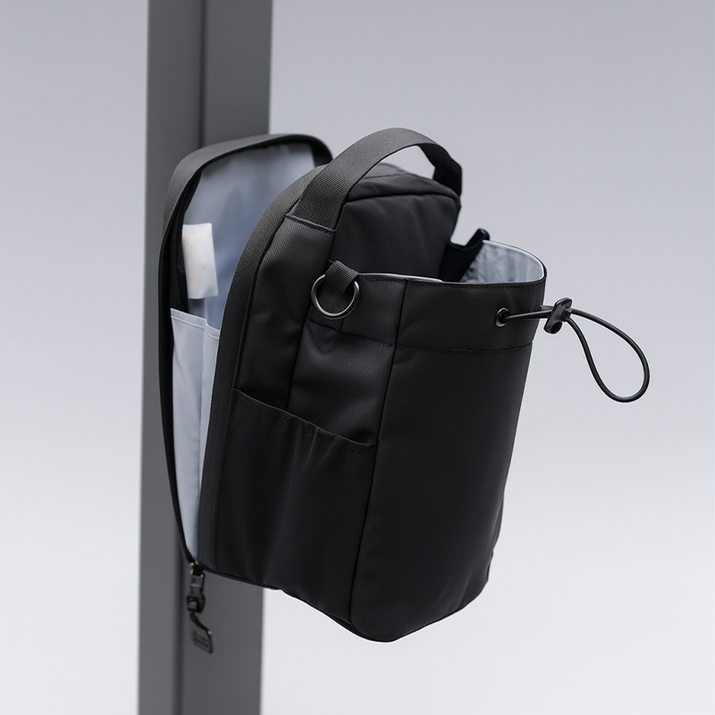 Svar 3: Väskan är mångsidig med bärhandtag, D-ringar för krokar och en avtagbar, justerbar axelrem, så du kan bära den bekvämt på flera sätt.